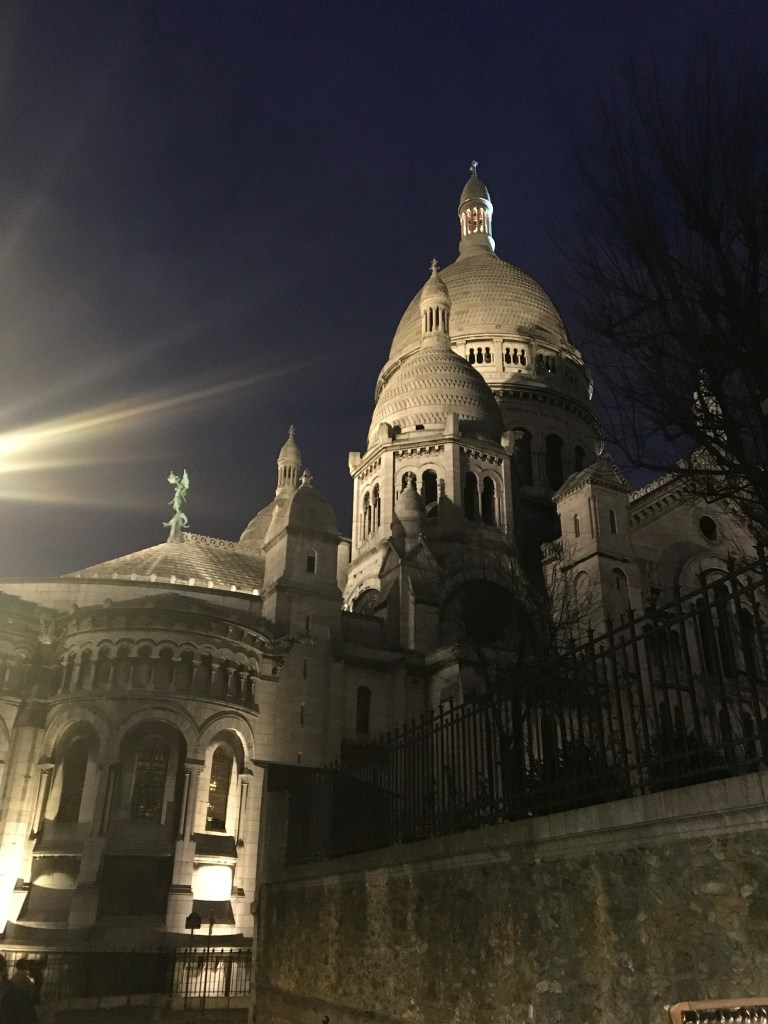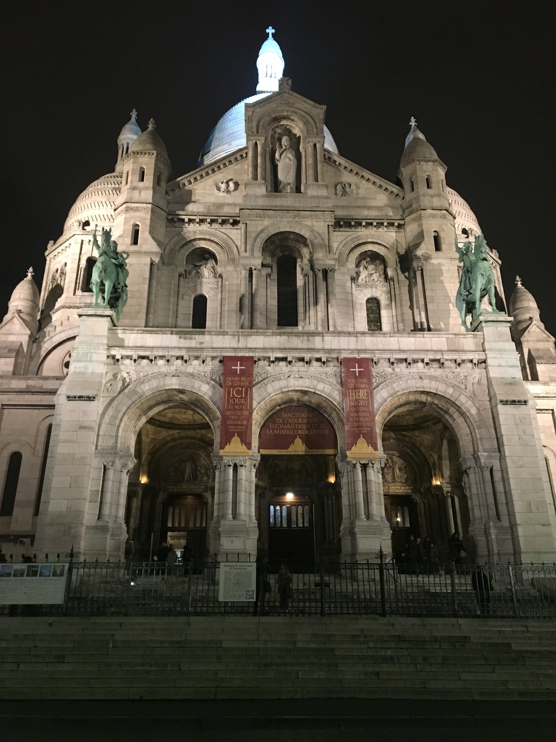 At the top of the hill (facing the other direction) is a beautiful, massive church calledthe Basilica of Sacre-Coeur. We went inside it, and I was in awe! It was HUGE and absolutely stunning. It was the perfect thing for us to do with a small amount of time in our evening. We then sat on the steps of the church and listened to French performers sing and play guitar while overlooking Paris! What a great way to start the trip.